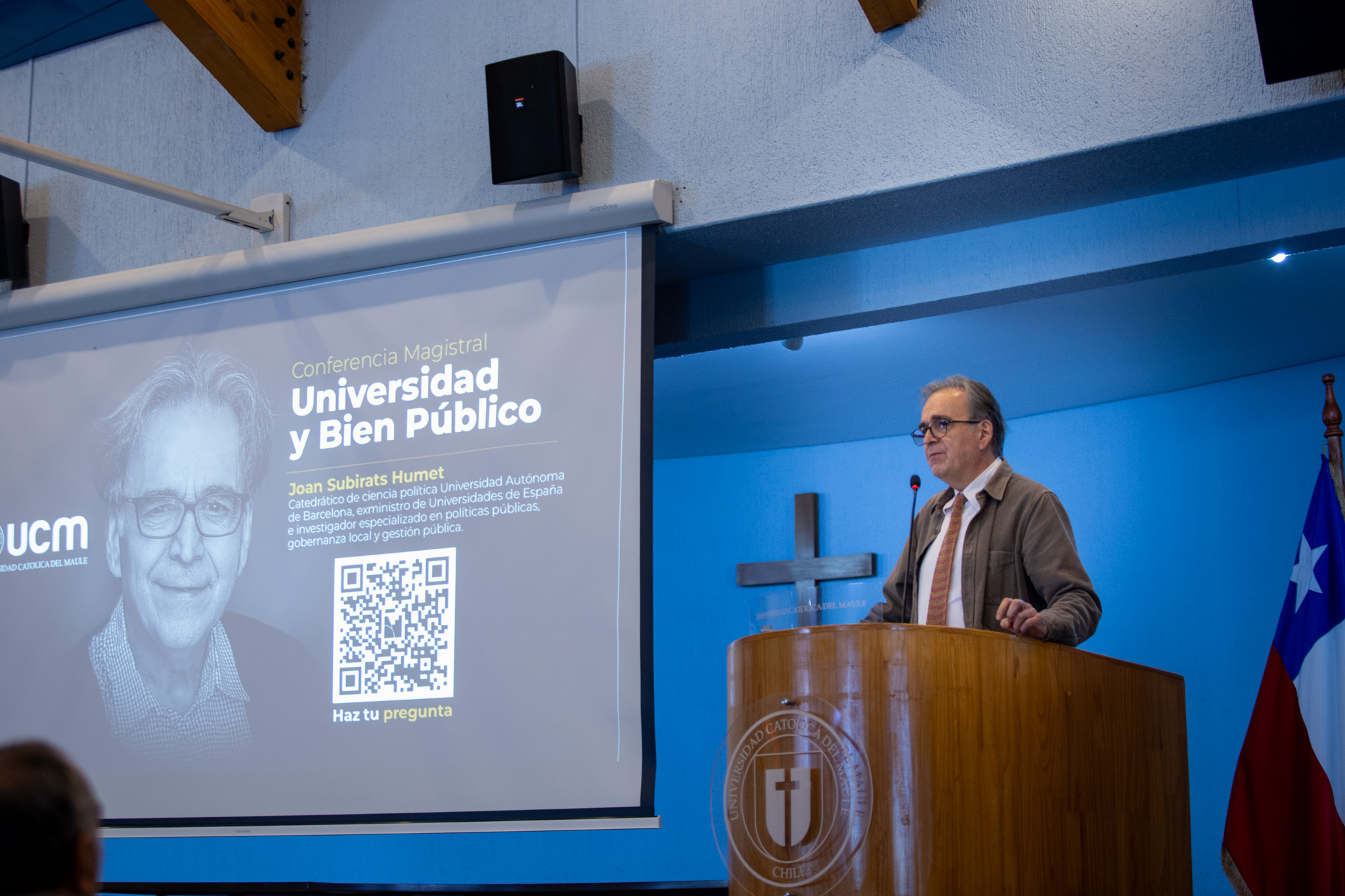 La Universidad Católica del Maule (UCM) recibió la ilustre visita del Dr. Joan Subirats, catedrático de Ciencia Política de la Universidad Autónoma de Barcelona y exministro de Universidades de España, en el marco de un conversatorio que abordó el papel crucial de las universidades frente a los desafíos del siglo XXI.