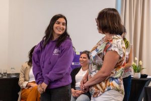 Se desarrollaron dinámicas participativas y relatorías a cargo de María Teresa Pavez Rosales, psicóloga clínica, junto a Andrea Sepúlveda Valdivia, de la Dirección de Equidad de Género de la Pontificia Universidad Católica de Valparaíso. Guiaron una conversación en torno a los cuidados propios y las redes de colaboración para el avance en género. “Es importante reconocer el valor de los cuidados desde las redes de colaboración para seguir avanzando en los trabajos vinculados al género a nivel nacional que permiten avanzar en justicia e igualdad” señaló Sepúlveda.